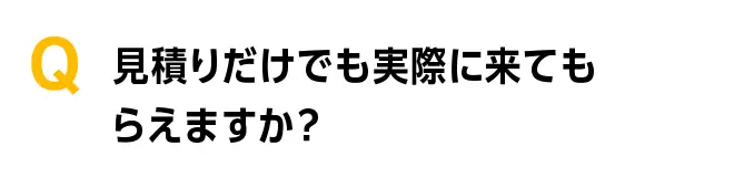 大丈夫です!お見積りは無料にて行わせていただきます! 別途調査費がかかる場合もございますが、その際にはスタッフから事前にお伝えいたしますのでご安心ください。